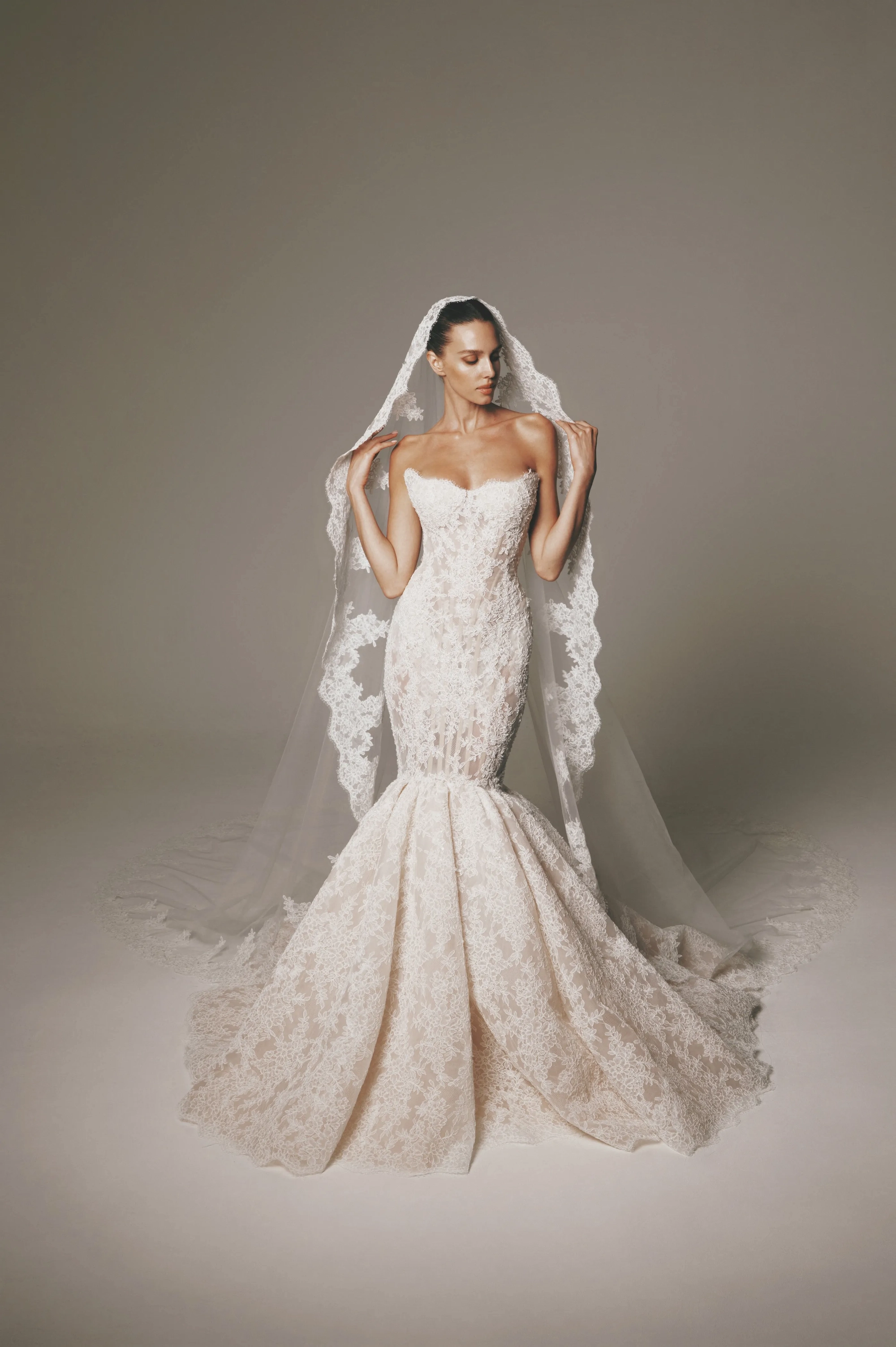 For best results, we advise having a professional seamstress or tailor take your measurements. If you measure in between sizes, we recommend ordering the size larger and tailoring the gown down for a perfect fit. Please note that most gowns will require alterations regardless of measurements.